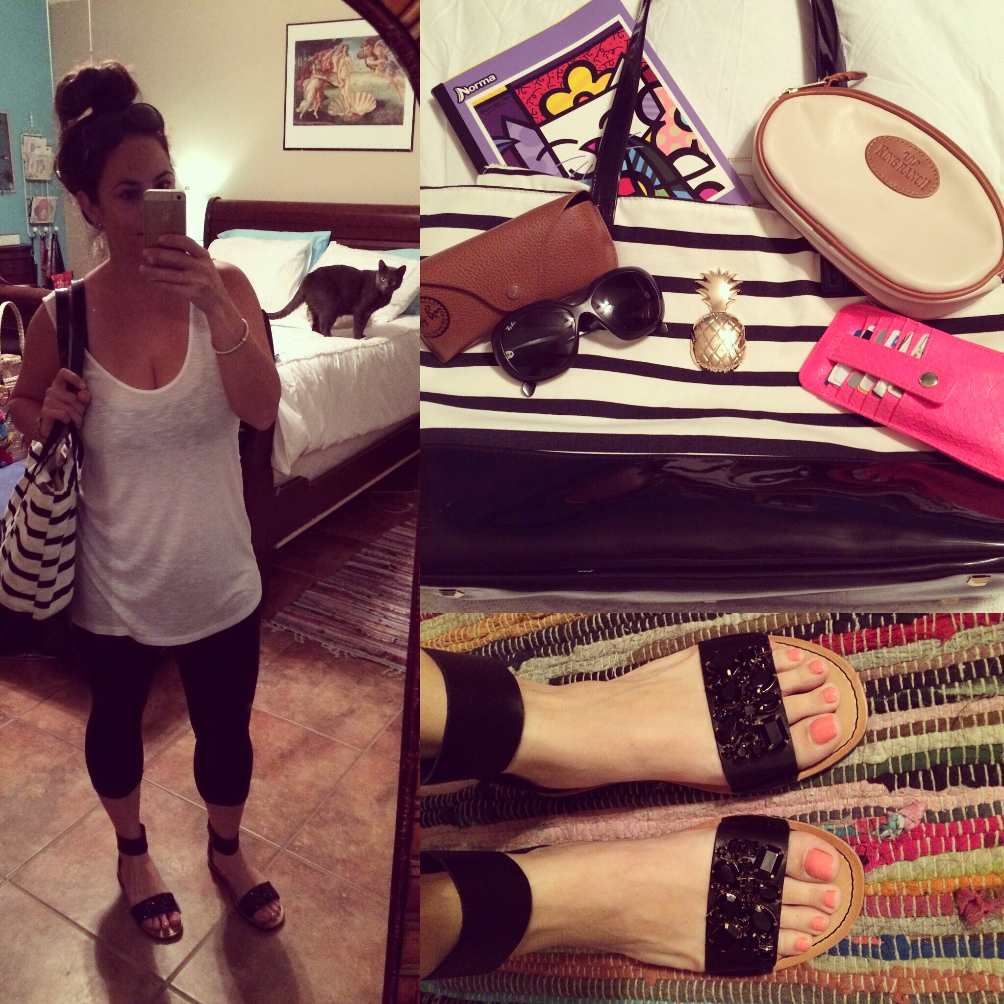 It’s summer and its hot. The only thing worse is you’ve got a lot to do and only a little bit of time to do it. Jeans? Too hot! Sundress? Please, I’m not trying to look cute. I didn’t even put on makeup. Shorts? I didn’t shave my legs! I said I had little time, remember? So, you’re solution is an oversized tank and leggings! Yessss! Also, when you’ve got a lot of errands to run, sometimes a tote bag works best. Happy summer!