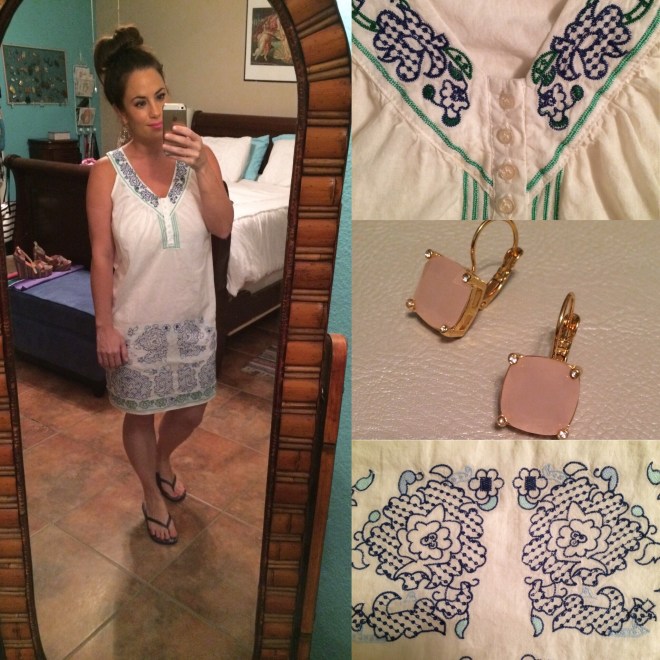 Lissette and I went garage sale exploring this past weekend. I found this dress and it was only $1! The Ralph Lauren earrings were only $10 at the Dillard’s sale.