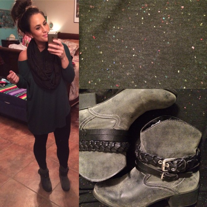 It’s the Season to Wear Green 🎄 An off the shoulder top and a scarf are perfect for a South Texas winter.